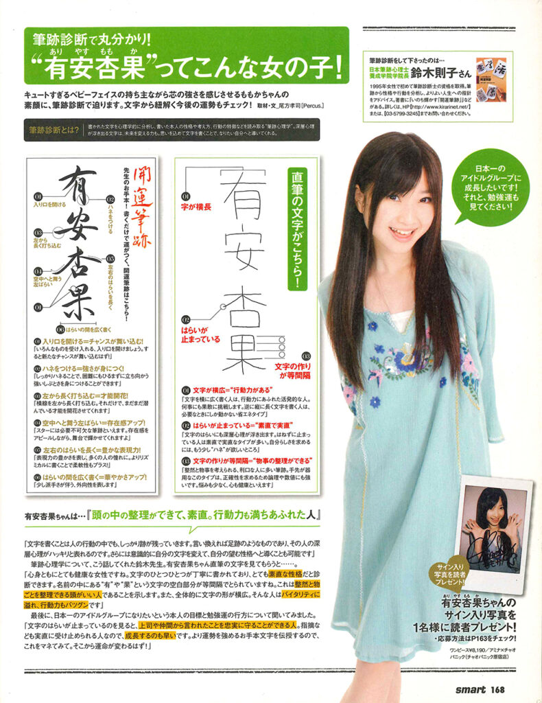 「Smart(スマート)」 6月号「筆跡診断で丸分かり! ”有安杏果”ってこんな女の子」 「開運筆跡診断」が掲載されました