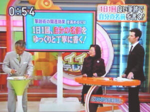 日本筆跡学院が紹介され、番組のタイトルロゴを「開運筆跡」で作成した結果、視聴率が大幅にアップしました。